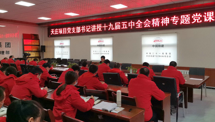 本網(wǎng)甘肅天水1月12日訊(通訊員 彭英 曹倩)1月10日,中鐵二十一局三公司副總經(jīng)理、天莊項目黨支部書記魏惠民講授了題為“堅持新發(fā)展理念 實現(xiàn)高質(zhì)量發(fā)展”的“十九屆五中全會精神”專題黨課。