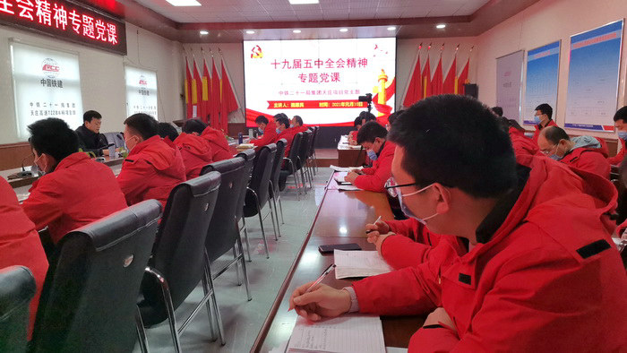 精彩的黨課贏得陣陣掌聲 魏總根據(jù)十九屆五中全會精神,結(jié)合建筑施工企業(yè)實際,圍繞深化改革、做優(yōu)做強,抓住機遇、拓展市場,堅持創(chuàng)新、科學發(fā)展,狠抓安全、平安發(fā)展,重視環(huán)保、綠色發(fā)展,重視人才、激發(fā)活力,強化黨建、發(fā)揮作用等七個方面的內(nèi)容,在深化企業(yè)改革、交通強國、企業(yè)創(chuàng)新、打造平安工地、綠色文明施工、健全企業(yè)人才培養(yǎng)機制、加強國有企業(yè)黨建工作等方面提出了自己獨到的見解。