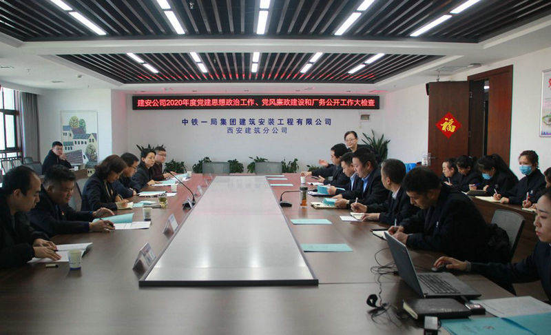 (西安訊)1月13日,由中鐵一局建安公司工會(huì)主席王淑娟帶隊(duì)、黨委辦公室、人力資源部、紀(jì)委、黨委宣傳部、群團(tuán)工作部一行6人組成的黨建思想政治工作檢查組到西安建筑分公司開(kāi)展2020年度黨建思想政治工作、黨風(fēng)廉政建設(shè)及廠務(wù)公開(kāi)工作檢查考核。西安建筑分公司經(jīng)理白濤、黨總支書記劉改民及班子成員、各部室負(fù)責(zé)人參會(huì)。