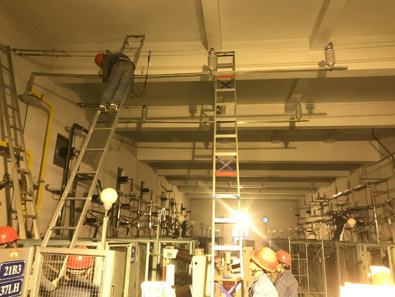 株洲北牽引變電所改造是分階段進(jìn)行的,2020年11月17日完成二臺(tái)牽引變壓器更換。2020年12月4日完成株洲北牽引變電所最后一次方案對(duì)接會(huì),會(huì)議要求我項(xiàng)目部搶在春運(yùn)前完成改造任務(wù),為春運(yùn)保駕護(hù)航。本次高壓室改造是采用新建移動(dòng)高壓室代替既有高壓室,既有高壓室“四進(jìn)八出”,移動(dòng)高壓室采用17條高壓電纜(包換3條備用電纜)進(jìn)行過渡,與既有高壓室共用操作和保護(hù)回路。高壓室改造前先對(duì)移動(dòng)高壓室受電沖擊,試運(yùn)行24h正常后,于2021年1月12日正式開始高壓室改造,經(jīng)一系列倒閘操作后,17:30既有高壓室退出運(yùn)行,高壓室改造內(nèi)容主要有單母排改為雙母排共更換512米、高壓斷路器16臺(tái)、支柱式絕緣子150組,穿墻套管更換12支,所有網(wǎng)柵噴漆,室壓室內(nèi)墻面粉刷等。既有高壓室改造工序多、施工難度大、交叉施工干擾多,項(xiàng)目領(lǐng)導(dǎo)小組審核制定安全可靠的日施工方案,精心組織精兵強(qiáng)將上場(chǎng),投入施工人員30多人,分成9個(gè)小組有條不紊進(jìn)行每道工序改造,每道工序合格后再進(jìn)行下道工序。為確保株洲樞紐行車安全,降低停電時(shí)間過長(zhǎng)的風(fēng)險(xiǎn),盡量縮短高壓室改造時(shí)間,京廣項(xiàng)目作業(yè)人員挑燈夜戰(zhàn),不畏寒冷饑餓,項(xiàng)目班子成員每日現(xiàn)場(chǎng)安全盯控,公司專家親自對(duì)技術(shù)、安全、質(zhì)量把關(guān),歷經(jīng)100小時(shí)晝夜連續(xù)作業(yè),按規(guī)定的電氣試驗(yàn)后,所內(nèi)設(shè)備參數(shù)一切正常,凌晨1點(diǎn)12分高壓室成功受電,比原計(jì)劃提前2天完成任務(wù)。株洲北牽引變電所改造圓滿完成,展現(xiàn)了武電人的中鐵速度,展現(xiàn)了央企當(dāng)擔(dān)。
