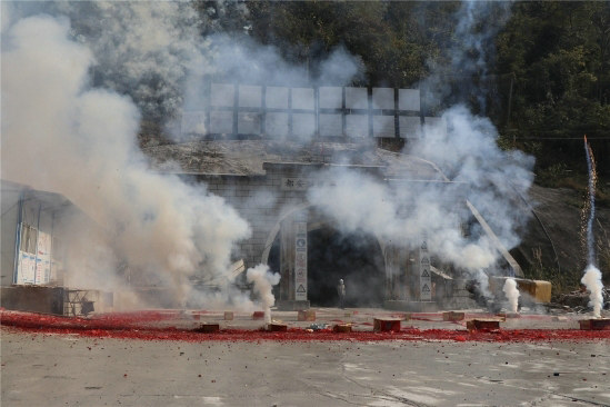 當(dāng)天上午10時(shí)許,陽光明媚,風(fēng)朗氣清。火紅的“黨員先鋒隊(duì)”和“青年突擊隊(duì)”旗迎風(fēng)招展,格外耀眼。項(xiàng)目領(lǐng)導(dǎo)、管理隊(duì)負(fù)責(zé)人以及管理隊(duì)長一行齊聚1號(hào)橫洞出口,舉行隆重的慶賀儀式。施工隊(duì)長、管理六隊(duì)、管理七隊(duì)負(fù)責(zé)人分別作了表態(tài)發(fā)言,承諾將一如既往做好本職工作,為集團(tuán)公司、公司交上滿意答卷。