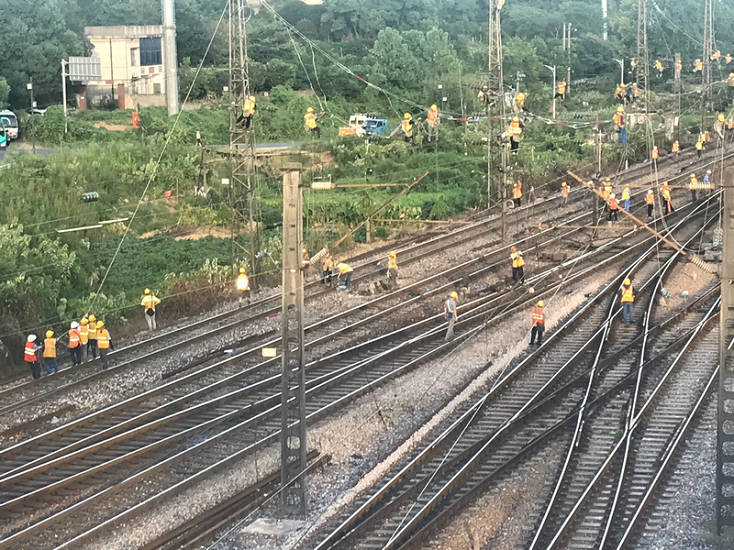 面對(duì)營(yíng)業(yè)線施工改造的重重困難,自2020年4月份復(fù)工以來(lái),項(xiàng)目部上下同結(jié)一心,以問(wèn)題為導(dǎo)向,層層壓實(shí)業(yè)主下達(dá)的各項(xiàng)任務(wù),狠抓執(zhí)行力,主要采取以下幾項(xiàng)措施:1、嚴(yán)格制定施工方案,項(xiàng)目班子成員親自現(xiàn)場(chǎng)盯控把關(guān)。施工前的方案制定、部署及審核,均由項(xiàng)目總工親自把關(guān)。每一個(gè)天窗點(diǎn)都有一名班子成員全程參與盯控,重點(diǎn)把控施工過(guò)程中的安全、質(zhì)量和進(jìn)度,每個(gè)封鎖點(diǎn)結(jié)束都要召開施工總結(jié)會(huì),確保改造后接觸網(wǎng)質(zhì)量達(dá)標(biāo),不斷提高工藝水平,保證列車運(yùn)營(yíng)安全穩(wěn)定。2、加強(qiáng)溝通協(xié)調(diào),爭(zhēng)取長(zhǎng)大天窗時(shí)間,為集中突擊創(chuàng)造條件。既有線施工受時(shí)間、空間限制,為爭(zhēng)取長(zhǎng)大天窗和充足施工時(shí)間,項(xiàng)目經(jīng)理和項(xiàng)目書記多次去廣鐵集團(tuán)協(xié)調(diào)“運(yùn)電”施工點(diǎn),積極與長(zhǎng)沙建設(shè)指揮部及廣鐵集團(tuán)供電部、運(yùn)輸部、施工臺(tái)協(xié)調(diào)溝通,申請(qǐng)長(zhǎng)大天窗為完成樞紐承力索和軟橫跨改造創(chuàng)造條件。對(duì)株洲樞紐和衡陽(yáng)樞紐接觸網(wǎng)承力索更換、軟橫跨更換、供電線改造等重難點(diǎn)工序,加強(qiáng)風(fēng)險(xiǎn)研判,制定專項(xiàng)施工方案,為集中力量打“殲滅戰(zhàn)”創(chuàng)造條件。3、狠抓計(jì)劃落實(shí)。項(xiàng)目經(jīng)理每周三組織各作業(yè)隊(duì)主要管理人員對(duì)下一周的日計(jì)劃進(jìn)行詳細(xì)部署,最大化綜合利用施工天窗,極大提高了生產(chǎn)效率。4、狠抓細(xì)節(jié)管理,扎扎實(shí)實(shí)、全身心投入到工作中去。“冰凍三尺,非一日之寒”,項(xiàng)目經(jīng)理每天晚上花上兩個(gè)小時(shí)通過(guò)微信與作業(yè)隊(duì)長(zhǎng)、技術(shù)人員進(jìn)行詳細(xì)溝通討論,對(duì)次日施工中每個(gè)細(xì)節(jié)充分預(yù)想,為施工提供了強(qiáng)有力的安全、質(zhì)量、進(jìn)度保障。5、整合人力資源,集中優(yōu)勢(shì)兵力,各個(gè)突破。利用“運(yùn)電”和“集中修”時(shí)機(jī),整合內(nèi)部第一、第四作業(yè)隊(duì)施工人員,并從鄰近兄弟標(biāo)段抽調(diào)精干人員做外援,突擊株洲樞紐和衡陽(yáng)樞紐。集中優(yōu)勢(shì)兵力一舉拿下株洲樞紐10股道軟橫跨更換、長(zhǎng)度2000米以上錨段承力索更換等重難點(diǎn)工序。衡陽(yáng)樞紐7條長(zhǎng)大錨段承力索和接觸線更換也順利完成。