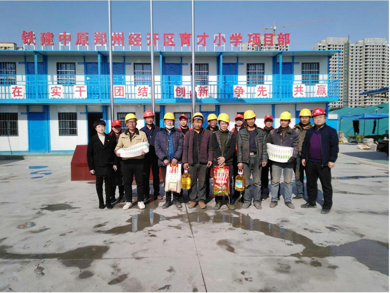 2021年2月3日(農(nóng)歷臘月二十二)小年前夕,擬建鄭州經(jīng)開區(qū)育才小學校長率領(lǐng)校辦公室、工會等負責人赴育才小學項目部慰問春節(jié)期間奮戰(zhàn)在一線的項目部員工。