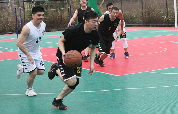 下午4點20分,隨著一聲哨響,比賽正式開始。雙方運動員一改場下友誼和諧氛圍,迅速進(jìn)入你爭我奪的拼搶之中,比分隨之交替上升,每節(jié)比賽的比分都非常焦灼,上下相差無幾。比賽中,由于部分職工從工地現(xiàn)場回來,立即加入到比賽行列,雙方運動員也隨之增加,最后兩隊均達(dá)到9人規(guī)模,更增添了比賽的激烈程度。由于下班臨近,觀眾也陸續(xù)到場,為比賽加油助威。最后,經(jīng)過90分鐘的激烈角逐,雙方運動員以90比90握手言和。