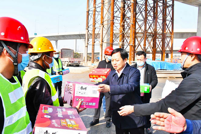 掛燈籠、放爆竹、貼“福”字、送溫暖...在2月11日除夕當天,鄭州市城建局黨組書記、局長耿勇軍蒞臨鄭州東四環(huán)項目建設(shè)工地,調(diào)研督導工程進展情況,并向仍奮戰(zhàn)在施工一線的參建者送去了親切的慰問和節(jié)日的祝福。
