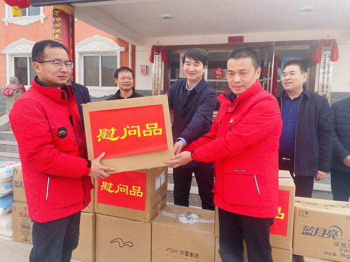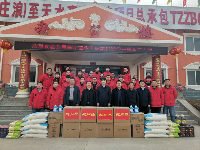 公司領導為項目職工發(fā)放慰問品