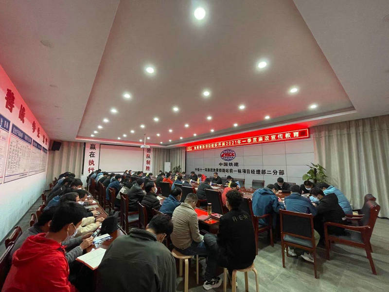 2021年2月28日晚,池黃鐵路項目組織開展2021年一季度廉政宣傳教育,會議由項目書記王昭仁主持。會議以習近平新時代中國特色社會主義思想為指導,全面貫徹黨的十九大和十九大歷次全會精神,以及中國鐵建黨風廉政建設和反腐敗工作會議暨警示教育大會精神。本次會議全面總結了2020年黨風廉政建設工作,指出了不足。會議有全體池黃鐵路項目職工參加,項目書記為全員詳細解讀公司2021年黨風建設和反腐倡廉工作會會議精神。通過本次廉政宣傳教育會,使全體職工深受教育,大家紛紛表示要珍惜自己的職業(yè)生涯,提高法律觀念和自律意識,真正做到警鐘長鳴。