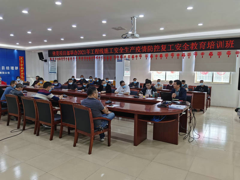 為貫徹落實(shí)珠三角公司及城建公司復(fù)工復(fù)產(chǎn)及疫情防控相關(guān)要求,做好佛莞城際工程線施工作業(yè)人員、現(xiàn)場(chǎng)盯控人員及返崗人員復(fù)工安全教育培訓(xùn)工作,佛莞城際項(xiàng)目部于2021年2月23日舉辦工程線施工安全生產(chǎn)疫情防控復(fù)工安全教育培訓(xùn)班。