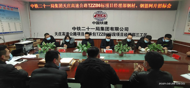 2月28日, 中鐵二十一局四公司天莊高速公路項(xiàng)目部組織召開(kāi)了鋼材、鋼筋網(wǎng)片物資采購(gòu)招標(biāo)會(huì),本次招標(biāo)共分為2個(gè)包件,鋼材、鋼筋網(wǎng)片各一個(gè)包件,共有6家單位參與了本次招標(biāo)會(huì)。甘肅省公航旅天莊項(xiàng)目公司紀(jì)檢科的領(lǐng)導(dǎo)、天莊項(xiàng)目3標(biāo)監(jiān)理試驗(yàn)室主任、公司總部物資設(shè)備部部長(zhǎng)、項(xiàng)目部全體領(lǐng)導(dǎo)及相關(guān)工作人員參加了招標(biāo)會(huì)。
