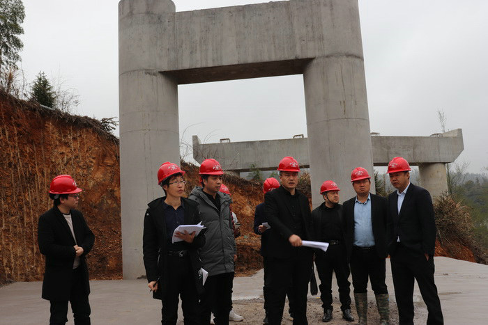 圖為項(xiàng)目班子成員和各部門負(fù)責(zé)人檢查工地