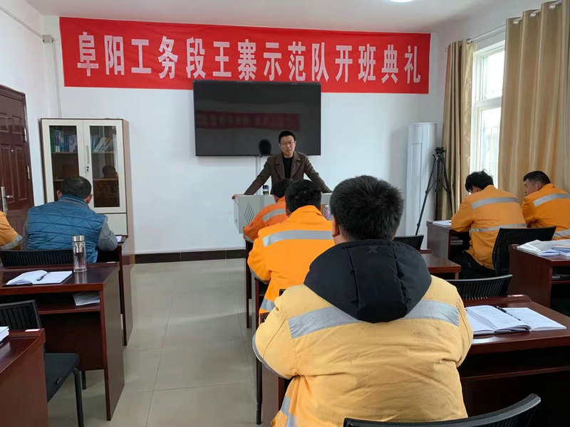 為實(shí)施人才工程戰(zhàn)略,建立后備工班長(zhǎng)隊(duì)伍,提高生產(chǎn)技術(shù)骨干的專業(yè)技能,保障鐵路運(yùn)輸高質(zhì)量發(fā)展,阜陽工務(wù)段于2020年底開始籌劃成立示范隊(duì)。從基地選取、人員選拔、設(shè)備界定、教學(xué)管理、物品配備等多方面進(jìn)行調(diào)研、討論,最終確定京九線王寨站為示范隊(duì)基地。