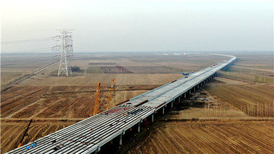 京德高速ZT7標(biāo)全長8.4公里,總造價12.25億元,包含各種梁型預(yù)制T梁共計3454片,是全線10個標(biāo)段中預(yù)制梁數(shù)量最多、橋梁工程體量最大的標(biāo)段。線路下穿100萬伏特高壓輸電線路,受高壓安全風(fēng)險管控影響,下穿施工手續(xù)復(fù)雜,停電遷改窗口計劃審批嚴(yán)格,致使300米長段落無法施工。為確保施工有序開展,項(xiàng)目部不等不靠,主動出擊與業(yè)主單位、國家電力主管部門積極對接,加快施工審批流程。在全力推動遷改進(jìn)度的同時,項(xiàng)目部調(diào)整樁基施工方案,采取下挖方法保證高壓安全距離,在高壓遷改前完成影響區(qū)全部樁基施工。1月25日,在各相關(guān)部門的共同努力下,高壓線路實(shí)現(xiàn)停電、遷改,項(xiàng)目部迅速組織人員,加大資源配置,利用春節(jié)前搶抓工期,僅用15天時間就完成了高壓影響區(qū)內(nèi)14個系梁、42根墩柱、14個蓋梁的施工任務(wù),為預(yù)制梁架設(shè)拓開工作面。