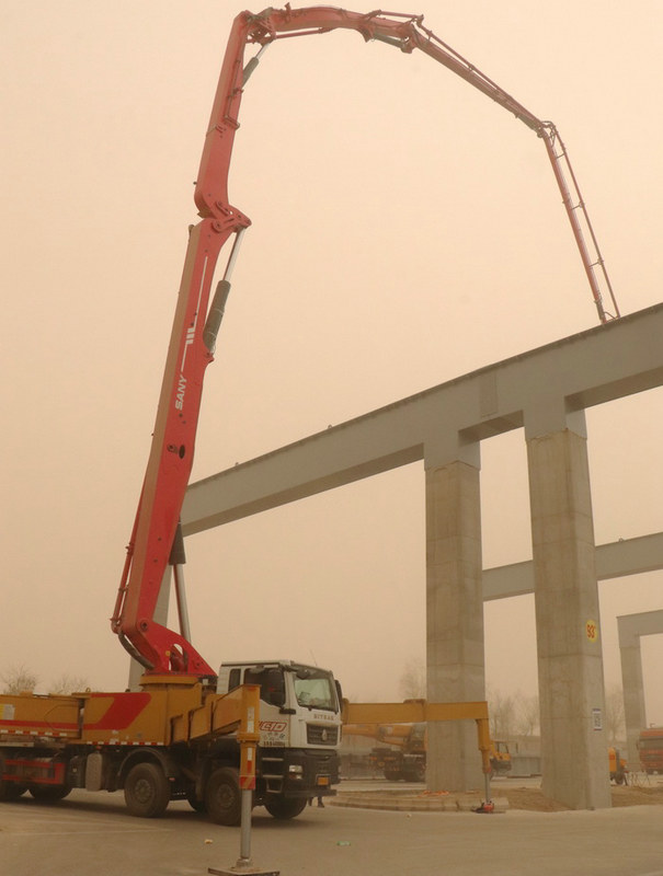 圖為泵車澆筑首件鋼蓋梁