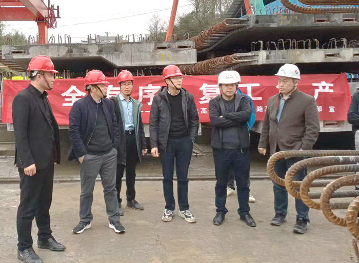 檢查組一行在項(xiàng)目辦,駐地辦及項(xiàng)目經(jīng)理張一平,總工龔沛基陪同下首先到橋面板、鋼板組合梁、T梁等專項(xiàng)安全質(zhì)量督查。倪處長(zhǎng)等在現(xiàn)場(chǎng)分別聽取了項(xiàng)目經(jīng)理張一平、總工龔沛基對(duì)目前復(fù)工復(fù)產(chǎn)后施工生產(chǎn)和安全質(zhì)量管理體系措施落實(shí)情況、對(duì)崗位人員的安全教育培訓(xùn)、安全應(yīng)急處置、施工生產(chǎn)部署及安全質(zhì)量綜合開展等情況匯報(bào),詳細(xì)了解了存在的困難和問題。倪處長(zhǎng)在現(xiàn)場(chǎng)對(duì)項(xiàng)目部安全質(zhì)量管控,工程實(shí)體、成品存放、施工質(zhì)量過程控制及安全文明標(biāo)準(zhǔn)化施工,給予積極評(píng)價(jià)和充分肯定,同時(shí),對(duì)檢查中存在的問題提出了指導(dǎo)性意見。