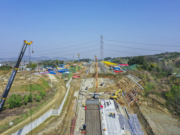 黃黃鐵路浠水南站春日施工忙