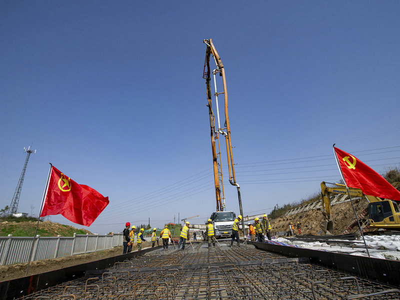項(xiàng)目蘄春南站、浠水南站鋪軌前期無(wú)砟道岔施工工程現(xiàn)場(chǎng),建設(shè)者們正綁扎鋼筋、澆筑混凝土,施工現(xiàn)場(chǎng)緊張有序。他們昂首起步開(kāi)新局,以飽滿的精神狀態(tài)、昂揚(yáng)向上的斗志,向年底黃黃鐵路通車運(yùn)營(yíng)目標(biāo)不懈努力,奏響了一曲春日施工忙的交響樂(lè)章。