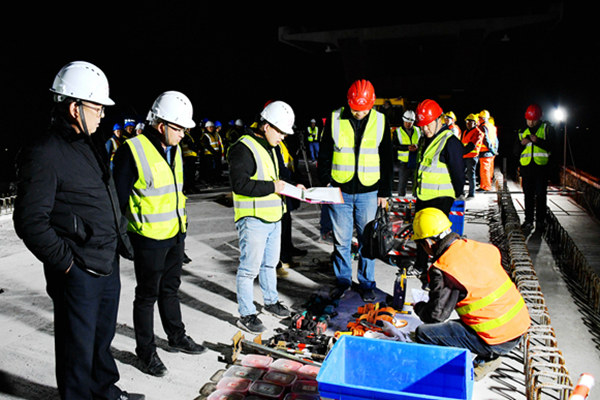 來自鐵路上海局集團公司南京樞紐、南沿江城際鐵路建設(shè)指揮部的何志超、長虞中明等領(lǐng)導(dǎo)都堅守在施工現(xiàn)場給予了極大的關(guān)注。