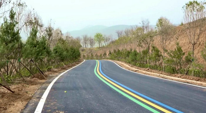圖為線形規(guī)整的彩色標(biāo)線瀝青路面 目前,第九標(biāo)段路基、路面、安防工程已全面完工,道路綠化、安全防護(hù)工程正在持續(xù)推進(jìn)中,沿黃生態(tài)廊道建設(shè)工程項(xiàng)目經(jīng)理部按照業(yè)主要求調(diào)配機(jī)械、組織人員做好施工現(xiàn)場(chǎng)清障掃尾工作,確保生態(tài)廊道其他標(biāo)段按期完工。