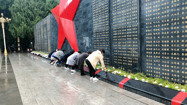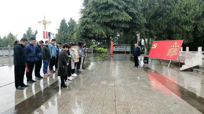 時屆清明祭先烈,翠柏凝春慰英魂??|縷細雨,訴不盡對革命先烈的無限深情;綿綿柳絮,道不盡對烈士英魂的無盡哀思。毛毛細雨中,烈士陵園松柏蒼翠,草木蔥蘢,巍峨聳立的革命烈士紀(jì)念碑顯得格外莊嚴(yán)肅穆。上午11時許,祭掃活動正式開始。首先全體人員向紀(jì)念碑獻上花籃,面向紀(jì)念碑集體唱響國歌并默哀一分鐘。支部書記帶頭宣誓,讓每位黨員重溫了入黨誓詞,帶領(lǐng)全體人員集體瞻仰了革命烈士紀(jì)念碑,每位同志向烈士墻獻上菊花,表達深切的哀思和崇高的敬意。隨后,全體人員參觀了革命烈士紀(jì)念館,讓全體人員接受了一次深刻的黨性教育。