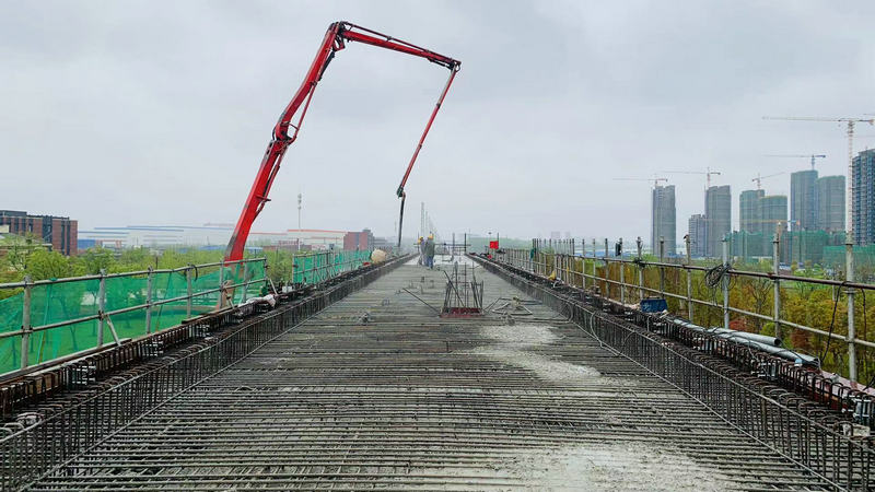 一是攻克施工安全風(fēng)險(xiǎn)高、工期緊迫的難題。項(xiàng)目部針對(duì)該座橋梁地處交通要道、高空作業(yè)安全風(fēng)險(xiǎn)高的施工情況,加強(qiáng)對(duì)佩戴安全帶、安全帽,安全網(wǎng)保持完好的監(jiān)控,確保施工人身安全。澆筑時(shí)采取了封閉道路、加大施工交通導(dǎo)行、安全防護(hù)等防護(hù)設(shè)施,確保了交通、施工安全。針對(duì)征地拆遷難度大,造成施工工期異常緊迫問題,項(xiàng)目部采用征下來一段集中力量晝夜突擊、滾動(dòng)施工的方法,確保了橋梁整體進(jìn)度。