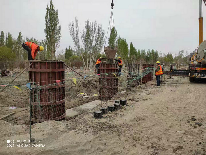 自由路大橋是哈密市自由路項(xiàng)目部的標(biāo)志性工程,大橋橋長270米、橋梁段路幅寬24米,上部主體結(jié)構(gòu)包含了32個墩身立柱、9個蓋梁、72片箱梁等。其中首個墩身立柱系梁施工已于4月3日順利完成澆筑,系梁施工中C30砼采用分層澆筑,均勻搗實(shí),并及時養(yǎng)護(hù),保證施工質(zhì)量。橋墩采用柱式墩,墩臺采用樁基礎(chǔ),墩柱澆筑則采用定型鋼模一次性澆筑。