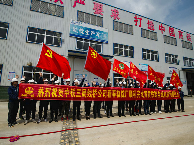 中鐵三局線橋公司黃黃鐵路蘄春軌枕廠全體參建員工慶祝黃黃鐵路軌枕預(yù)制完成