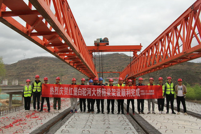 甘肅天水訊(通訊員 曹倩 彭英 記者尹登明) 4月18日,在陣陣鞭炮聲中,中鐵二十一局集團(tuán)天莊高速TZZB6標(biāo)項(xiàng)目承建的紅堡白駝河大橋雙幅順利架通,這是繼該橋右幅架通后,項(xiàng)目攻下的又一個(gè)“堡壘”,為建黨100周年提前獻(xiàn)厚禮。TZJL3標(biāo)駐地副高監(jiān)黃河到場祝賀。