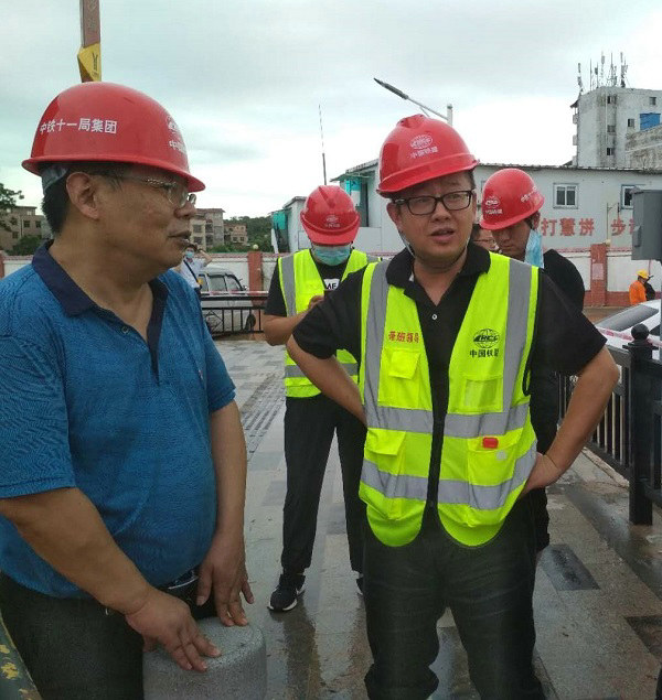 何佳雷(左2)在現(xiàn)場檢查督導(dǎo)工作