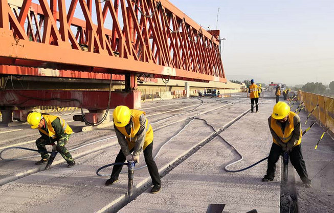清晨6點(diǎn)15分,當(dāng)晨曦里的第一縷陽光升起,新鄉(xiāng)牧野大橋項(xiàng)目施工現(xiàn)場已經(jīng)開始機(jī)械轟鳴、人頭攢動,參建人員正以昂揚(yáng)的姿態(tài)和飽滿的熱情投身到鐵路上方第8跨舊橋鉸縫鑿除施工中。由于該工程全部為營業(yè)線施工,拆除舊橋要點(diǎn)施工安全系數(shù)高、鐵路干擾多、橋梁上部作業(yè)面窄,同時目前正處于京廣鐵路“集中修”時期,導(dǎo)致工程涉鐵手續(xù)辦理困難、給點(diǎn)次數(shù)少,面對種種不利因素和時間緊、任務(wù)重的壓力,中原公司積極應(yīng)對,周密部署,施工前對臨時用電、施工機(jī)具、應(yīng)急設(shè)備等進(jìn)行嚴(yán)格檢查,就作業(yè)程序、施工要點(diǎn)和安全注意事項(xiàng)對作業(yè)人員進(jìn)行現(xiàn)場交底,確保點(diǎn)內(nèi)工序銜接緊密,緊湊施工,全力加快工程進(jìn)度,利用8個營業(yè)線III級要點(diǎn)完成60米防撞墻拆除和180米鉸縫切割施工任務(wù),為下一步鐵路正上方空心板梁拆除施工提供了有力保證。