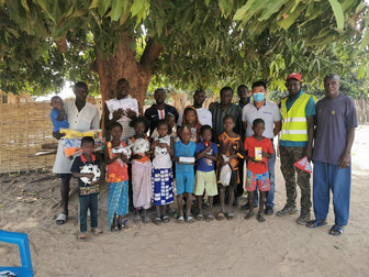 清晨一早,大家?guī)Ш脺?zhǔn)備捐贈(zèng)的學(xué)習(xí)文具(包括圓珠筆、鉛筆、橡皮、卷筆刀、筆記本、格尺、三角板、量角器等)和體育用品(包括足球、整隊(duì)球服、球襪等)出發(fā)了。抵達(dá)各個(gè)村莊后,各村長(zhǎng)攜村民及孩童表示熱烈歡迎。隨后舉行了捐贈(zèng)儀式并合影留念。朱經(jīng)理表示,中鐵七局在完成項(xiàng)目的同時(shí)會(huì)全力支持村莊教育及文體活動(dòng),希望當(dāng)?shù)厍嗌倌昕梢缘玫礁玫慕逃h(huán)境,有更好的體育鍛煉機(jī)會(huì),并且保證定會(huì)鼎力相助在雨季期間遇到自然災(zāi)害的村莊。同時(shí),七局也希望在施工過程中,雙方可以相互理解,共同商討因施工給村莊所帶來的不便。對(duì)此,各村村長(zhǎng)及村民掌聲不斷,表示一定會(huì)全力配合施工,并為七局員工給予施工時(shí)必要的幫助。比尼奧納省區(qū)長(zhǎng)Modou Badji先生也對(duì)七局的捐贈(zèng)表示非常感謝,對(duì)公司給予了很高的評(píng)價(jià),并保證今后會(huì)全力動(dòng)員當(dāng)?shù)厝嗣駥?duì)施工提供便利。