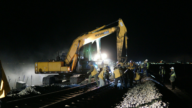 6月8日凌晨6:10分,鋸軌、扒砟、撥接、合龍、上砟、整道,經(jīng)過210分鐘的奮戰(zhàn),中鐵二十一局一公司烏將鐵路S2標(biāo)項(xiàng)目部將長800米的施工便線與既有烏將線順利撥接,打破了既有線影響施工的“瓶頸”,為下一步橋梁施工提供了作業(yè)條件。