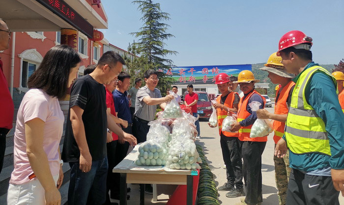 項(xiàng)目部為施工隊(duì)精心購(gòu)置了豬肉、粽子、飲料、咸鴨蛋、西瓜、荷香正氣液等慰問(wèn)品,將項(xiàng)目部濃濃的關(guān)愛(ài)傳遞到每一位一線施工人員的心里,給炎炎夏日的一線建設(shè)者送去了“清涼”。