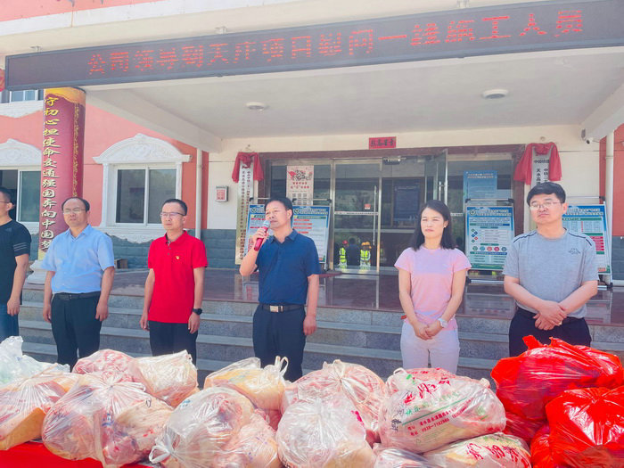 公司領(lǐng)導(dǎo)及項(xiàng)目負(fù)責(zé)人為一線工人發(fā)慰問(wèn)品