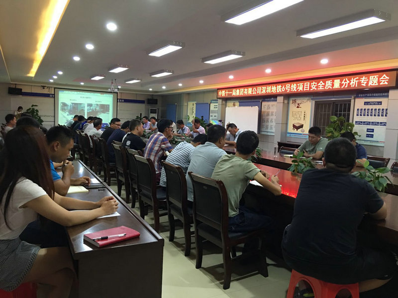 8月26日晚,中鐵十一局深圳地鐵六號線項(xiàng)目部召開安全質(zhì)量專題會。項(xiàng)目部領(lǐng)導(dǎo)班子成員、各部室人員、各施工班組負(fù)責(zé)人等40余人參加會議,會議由項(xiàng)目安全總監(jiān)金彪主持,項(xiàng)目經(jīng)理孟奇在會上講話。