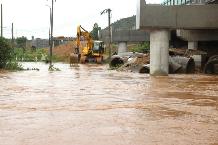 為了全力以赴做好防洪防汛,面對短短一小時就達到100多毫米的強降雨,為保障參建員工生命財產(chǎn)安全,防洪防汛領導小組堅持“生命至上、安全第一”的理念,冒著大雨,按照防洪度汛預案要求,對河道進行排澇疏浚清淤雜物,采取避災措施,迅速轉(zhuǎn)移機械設備、物資材料,對低洼地帶、易澇地帶采取圍堰措施,同時加強重點部位值班值守,對邊坡塌方滑坡地帶及時用挖機清理,保障道路暢通和出行安全。