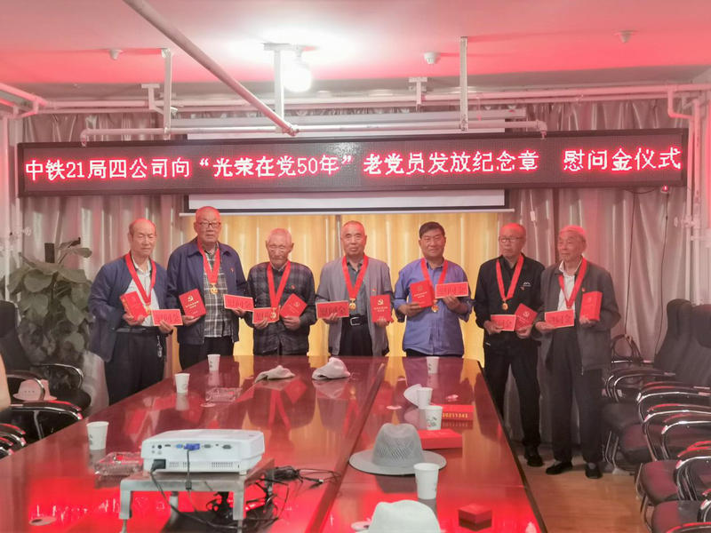 6月29日,中鐵二十一局四公司黨委向在蘭州、銀川、西寧等地黨齡達(dá)到50年的離退休老黨員頒發(fā)了“光榮在黨50年”紀(jì)念章,并發(fā)放了特別慰問(wèn)金,讓老黨員親身感受到了黨組織的關(guān)懷和溫暖。