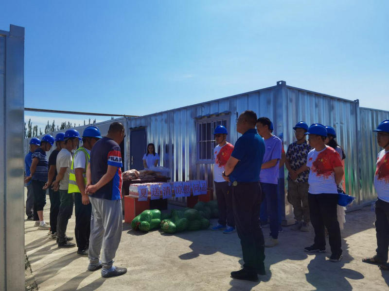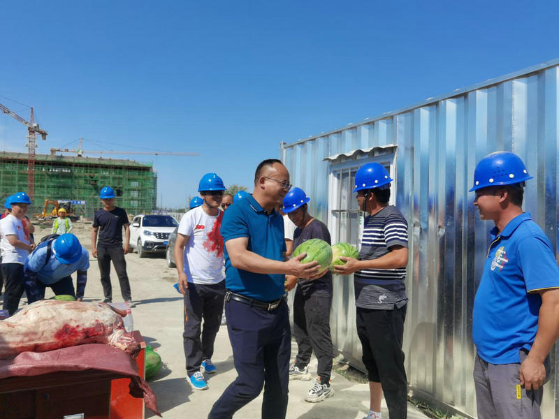 慰問中,段榮福向施工人員表達(dá)了親切的問候和關(guān)心,叮囑各施工隊在高溫作業(yè)時要提高自我保護(hù)意識和安全防范能力,注意安全用電、用火、用氣;叮囑各班組組長做好班前會的防暑降溫宣傳教育工作,避免職工在高溫天氣下疲勞作業(yè),精心組織好施工生產(chǎn),確保施工進(jìn)度與質(zhì)量,努力完成節(jié)點(diǎn)目標(biāo)。