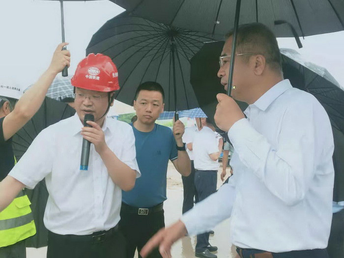本網(wǎng)陜西寶雞7月2日訊(通訊員 胡志超)寶雞市委副書記、市長楊廣亭冒雨到中鐵二十一局三公司承建的眉太高速渭河特大橋進行調(diào)研。