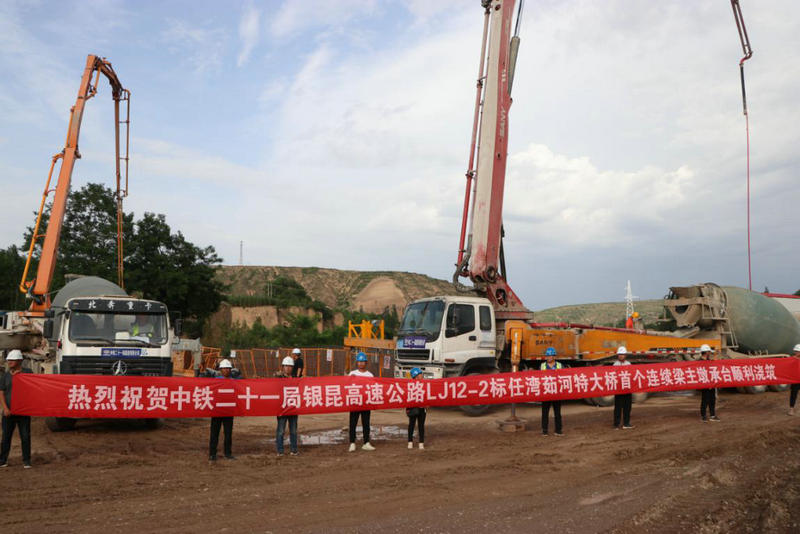 6月30日,鞭炮齊鳴,機(jī)械轟隆,中鐵二十一局銀昆高速公路項(xiàng)目首個(gè)連續(xù)剛構(gòu)主墩承臺(tái)歷時(shí)20多個(gè)小時(shí)的連續(xù)作業(yè),圓滿完成主墩承臺(tái)的施工任務(wù),該承臺(tái)為任灣茹河特大橋首個(gè)主墩承臺(tái)。