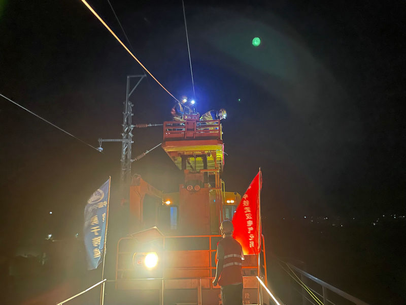 作業(yè)車正在進行接觸網(wǎng)導線架設(shè)