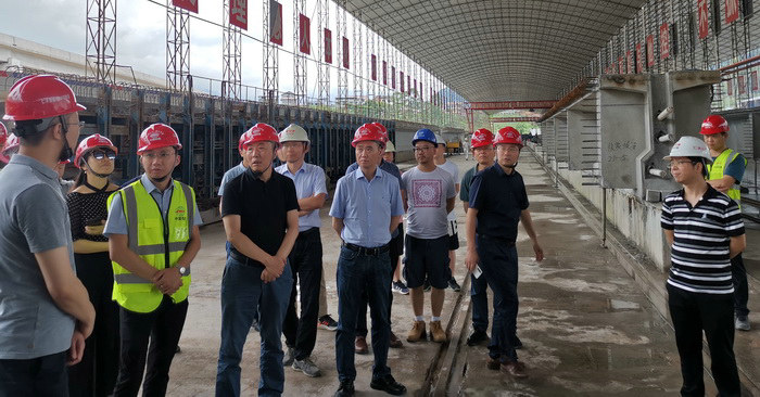 項目負責(zé)人曾厚豐(前左二)介紹情況 據(jù)現(xiàn)場負責(zé)人介紹,傳統(tǒng)的高速公路建設(shè)工地,預(yù)制梁場、鋼筋加工棚等大臨設(shè)施均是露天設(shè)置,既不利于施工產(chǎn)品的品質(zhì)把控,工人在露天的環(huán)境中工作又容易產(chǎn)生安全和健康隱患。為了徹底解決這一難題,項目部對大臨設(shè)施配置進行了改進,建成封閉式的鋼筋加工棚和預(yù)制梁場,封閉式的場站不僅改善了一線工人的作業(yè)環(huán)境,也為內(nèi)部技術(shù)創(chuàng)新創(chuàng)造了條件。同時,項目秉承“優(yōu)質(zhì)高效、安全廉潔、綠色環(huán)保、科技創(chuàng)新”的項目建設(shè)理念,按照“機械化、工廠化、專業(yè)化、信息化”的管理思路大力推進鋼筋加工和預(yù)制梁場品牌建設(shè),積極推動高速公路建設(shè)施工一線“加工場”向“加工廠”轉(zhuǎn)變。