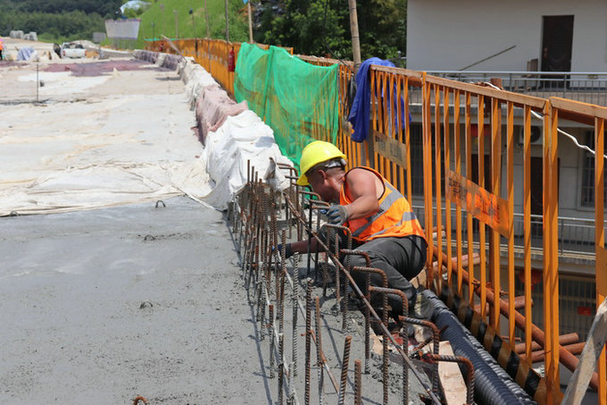 圖為混凝土養(yǎng)護目前,項目部將以此為契機,搶抓工期,不斷掀起夏季大干高潮,攻堅克難,發(fā)揚連續(xù)作戰(zhàn)的工作作風,推動后續(xù)施工再上新臺階。