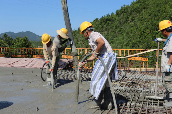 柏溪互通主線橋共4聯(lián)左右幅各7跨跨現澆梁,全長216米,為全線重點控制工程之一,采用支架連續(xù)現澆方法施工,經過全體參建人員戰(zhàn)高溫、斗酷暑連續(xù)奮戰(zhàn)40個小時,本次澆筑混凝土1430立方米,全橋累計澆筑5116立方米。