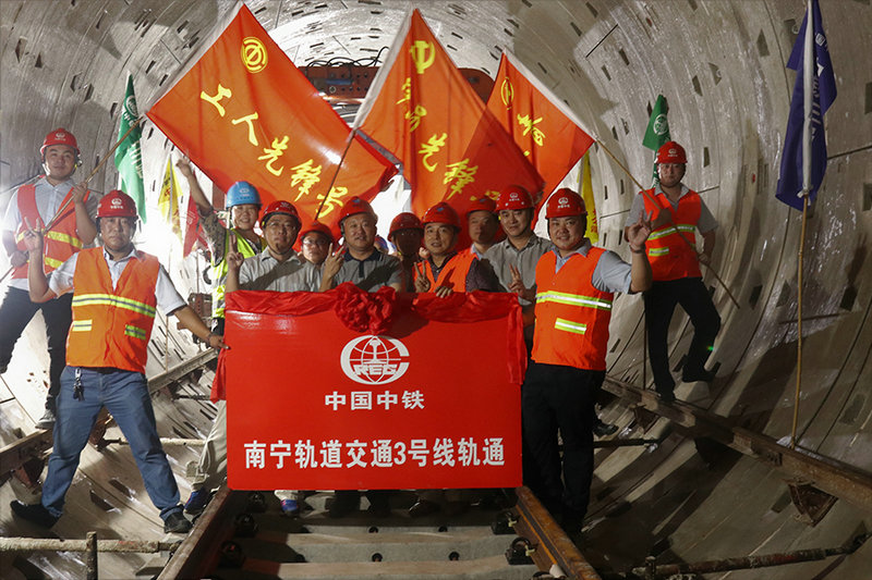南寧市軌道交通集團建設(shè)分公司總經(jīng)理王炳華、副總經(jīng)理莫志剛,中國中鐵股份有限公司南寧軌道交通3號線02標(biāo)工程指揮部常務(wù)副總指揮長劉進友、總工程師艾厚軍、副總指揮長錢建勛等領(lǐng)導(dǎo)參加了軌通儀式。