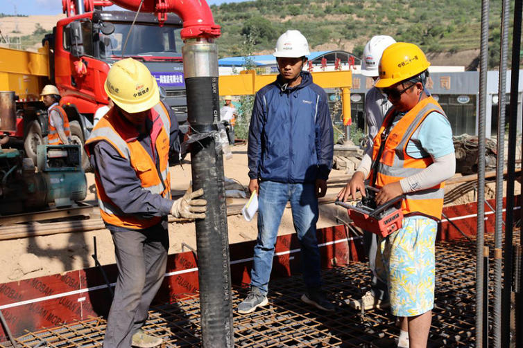 杜家溝大橋2#主墩承臺(tái)混凝土澆筑采用兩臺(tái)泵車同時(shí)施工,在澆筑過程中,以定人定崗晝夜兩班倒的方式進(jìn)行全過程盯控。為確保施工質(zhì)量,項(xiàng)目部超前謀劃、科學(xué)部署,根據(jù)施工現(xiàn)場(chǎng)的實(shí)際情況,優(yōu)化施工方案,排查安全隱患,混凝土溫度過程控制采用智能溫度實(shí)時(shí)檢測(cè)系統(tǒng),確保大體積混凝土強(qiáng)度達(dá)到設(shè)計(jì)要求。