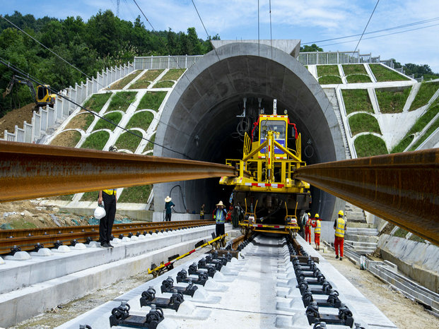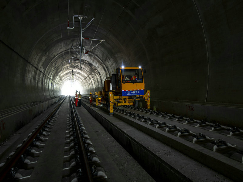 黃黃高鐵鋪軌進(jìn)入蘄春境內(nèi)-這是王上灣隧道內(nèi)鋪軌畫面