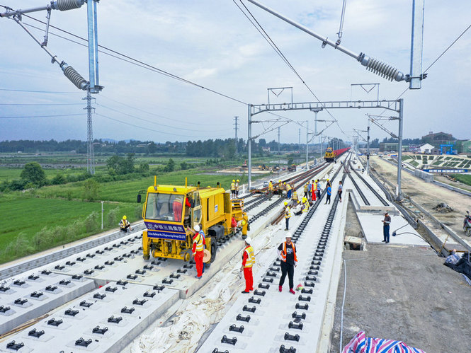 中鐵三局線橋公司黃黃高鐵鋪軌進(jìn)入黃梅縣境內(nèi)