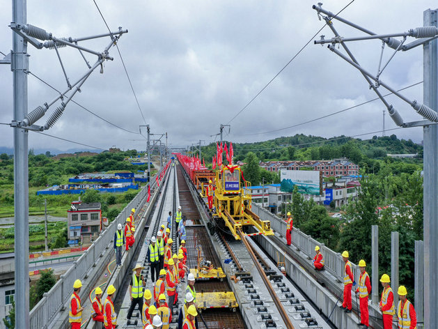 中鐵三局線橋公司黃黃項目部克服種種不利因素,多措并舉,經(jīng)多方協(xié)調(diào)最終實現(xiàn)6月19日黃黃鐵路首鋪。鋪軌期間參建將士風(fēng)雨兼程,戰(zhàn)雨天、斗酷暑、晝夜奮戰(zhàn)、攻克多種技術(shù)難關(guān),不斷刷新鋪軌進(jìn)程。