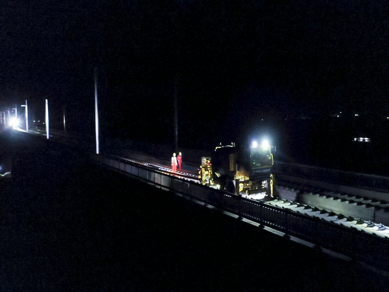 7月11日黃黃高鐵蘄河特大橋鋪軌畫面