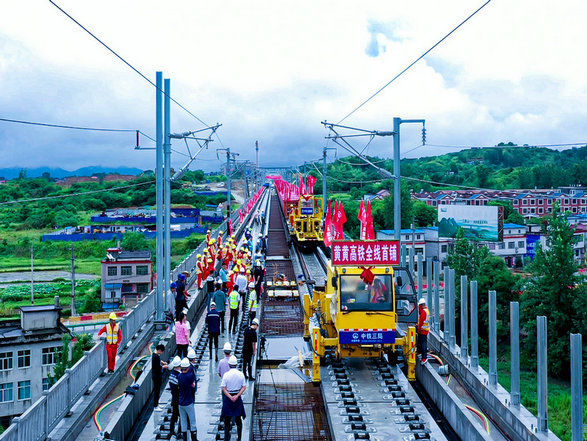 7月11日黃黃高鐵鋪軌進(jìn)入蘄春南站